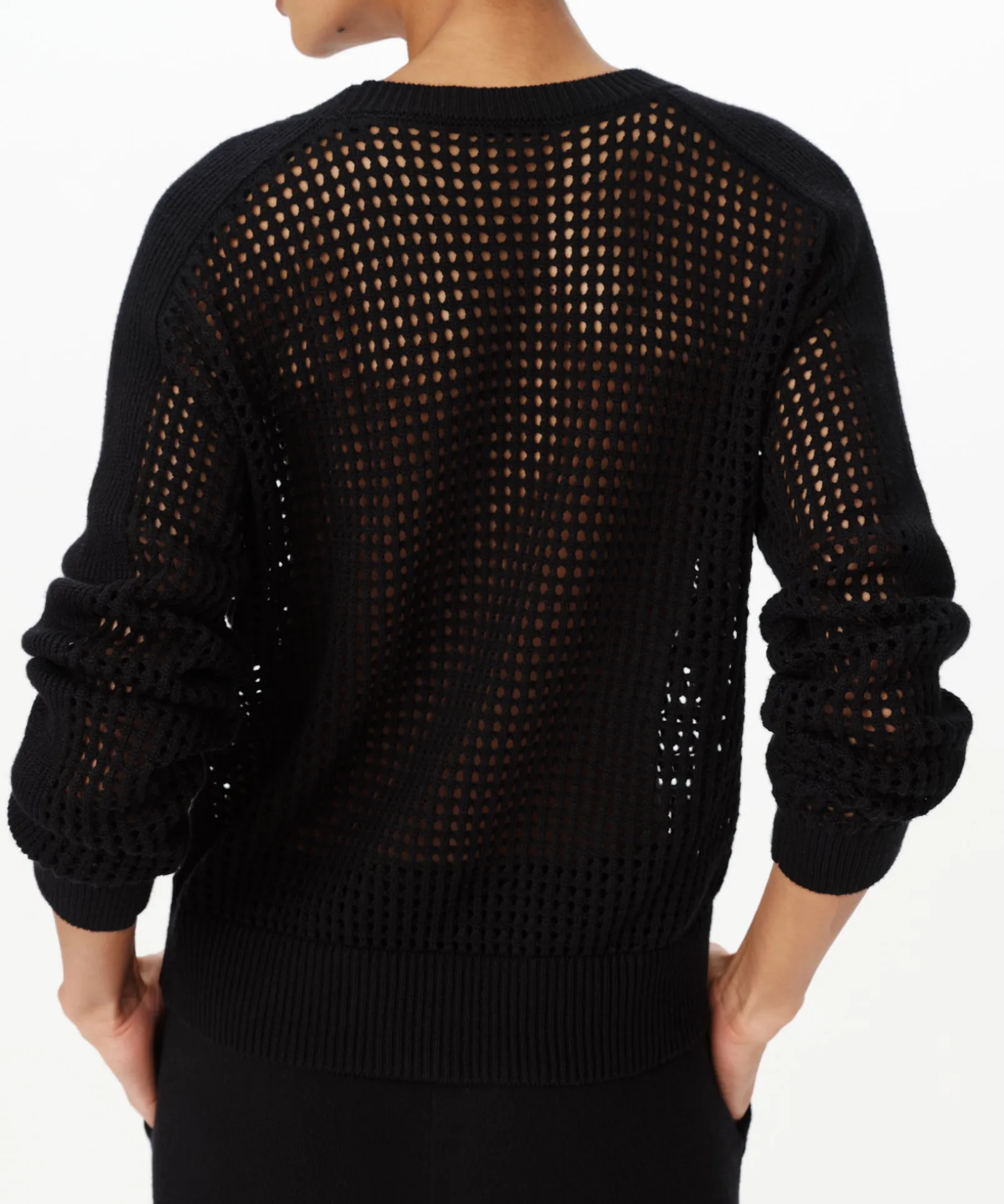 Cotton Cashmere Mesh Stitch V-Neck Sweater – Black