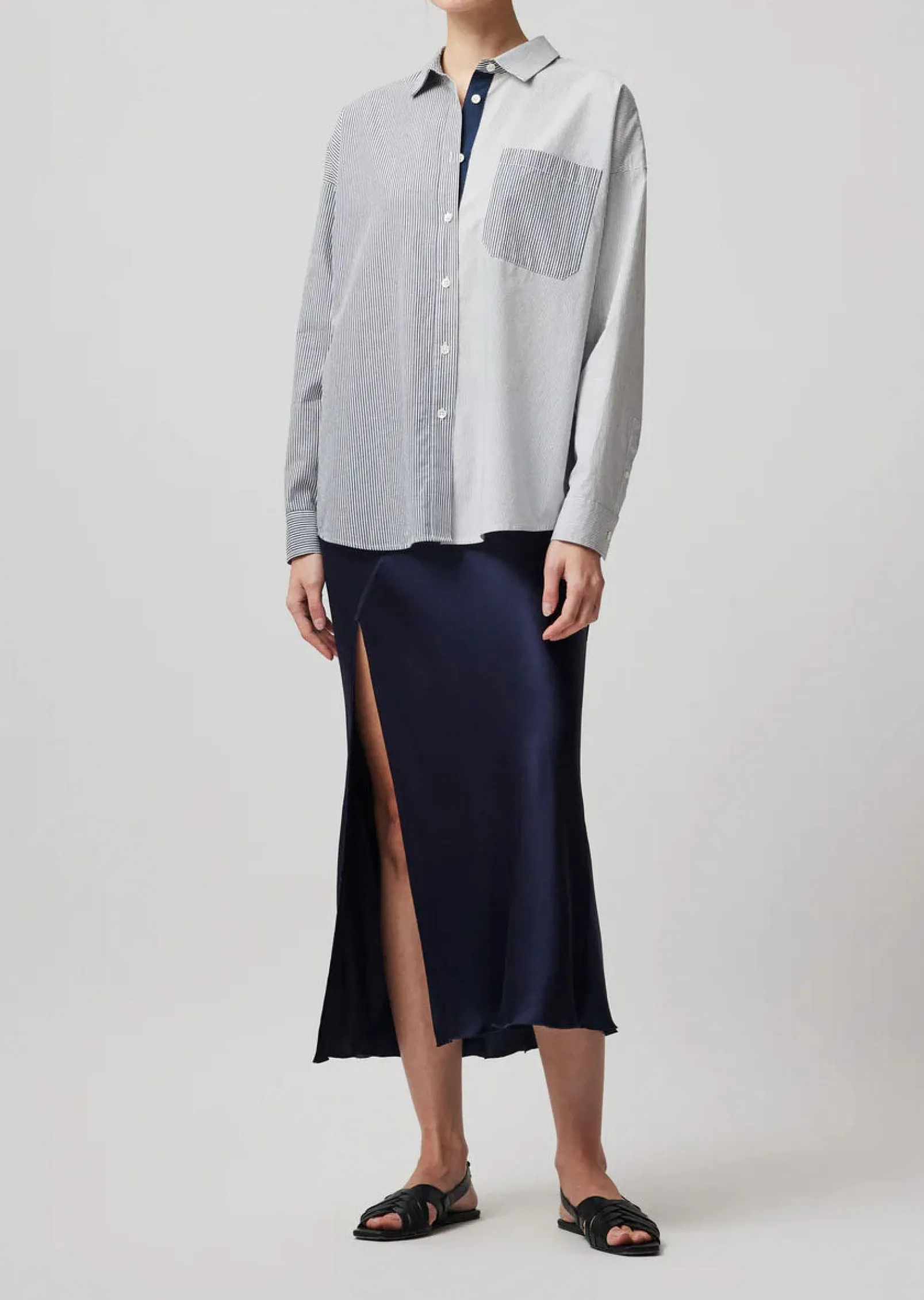 Mixed Stripe Shirting Boyfriend Shirt – Chalk-Ink