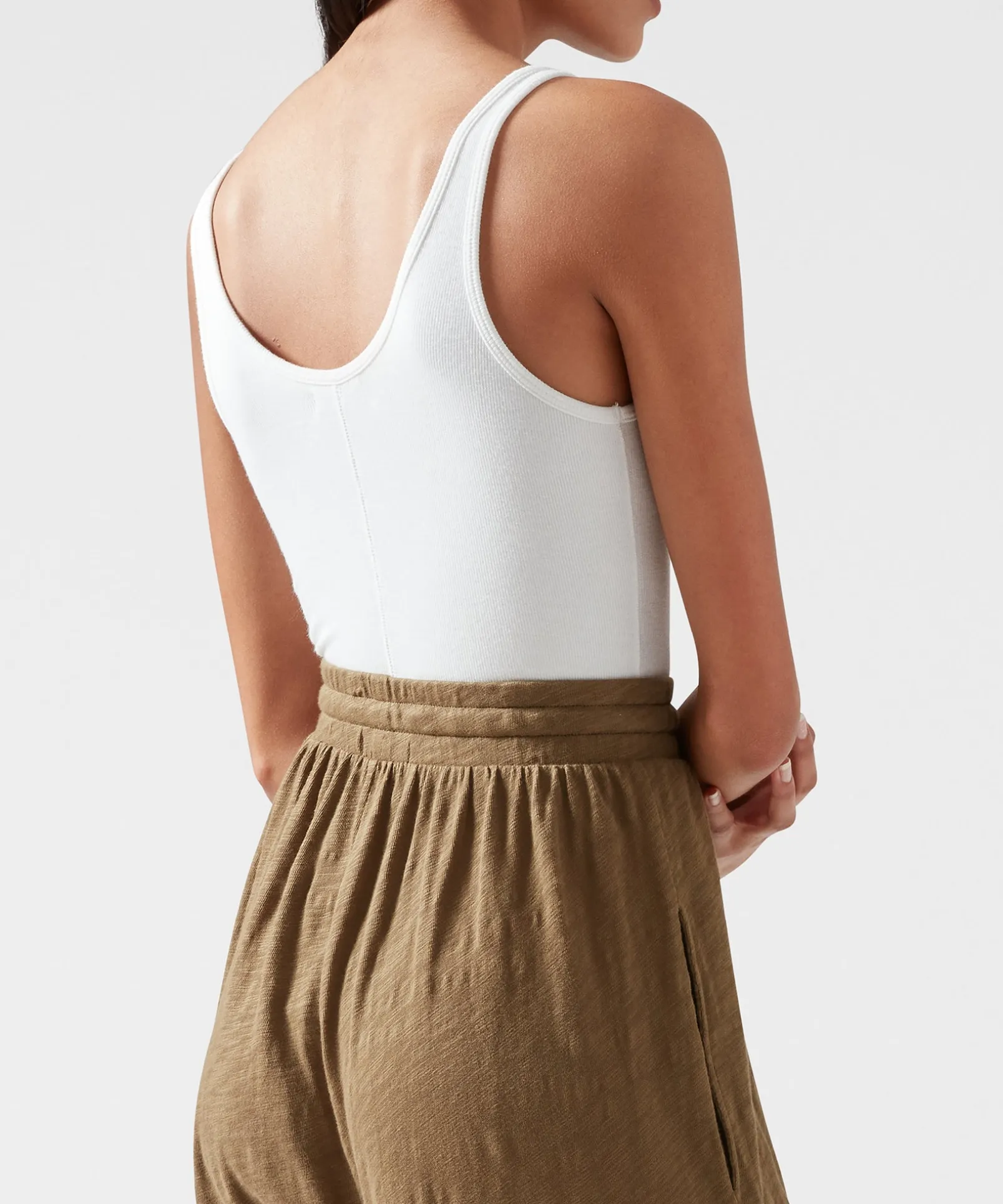 Modal Rib Deep-V Tank Bodysuit – White