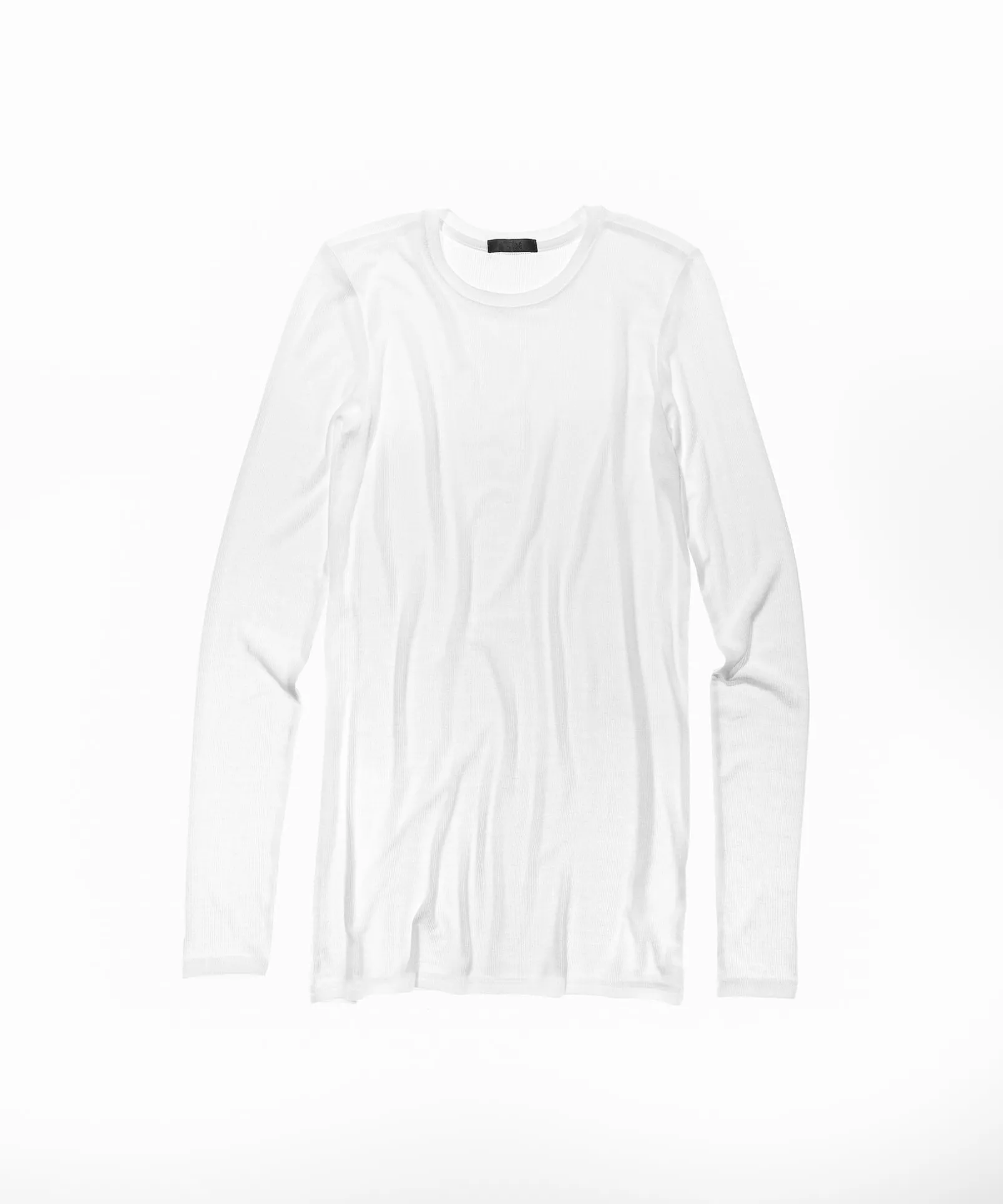 The Modal Rib Long Sleeve Crew Tee features a single-layer, featherweight construction with a meticulously measured crew neck. The Micro-Modal yarn, made in Peru on a machine used only by ATM, is inimitably soft. It is the ultimate everyday basic that molds to the body like a second skin.This piece was crafted from Tencel™, a Modal fiber derived from raw material wood. It is produced using a closed-loop spinning process in which chemicals and water are recycled at a recovery rate of 99%. Biodegradable and compostable, this fabric can ultimately be returned back to nature. Kind to the planet and to the body, it is soft, breathable and gentle on the skin.