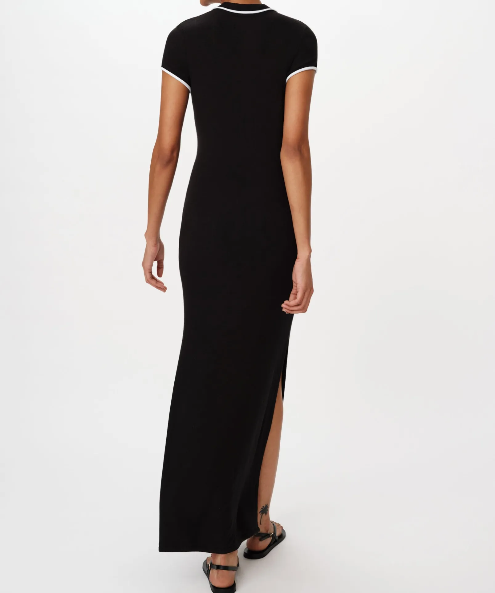 Modal Rib Short Sleeve Split Neck Dress – Black
