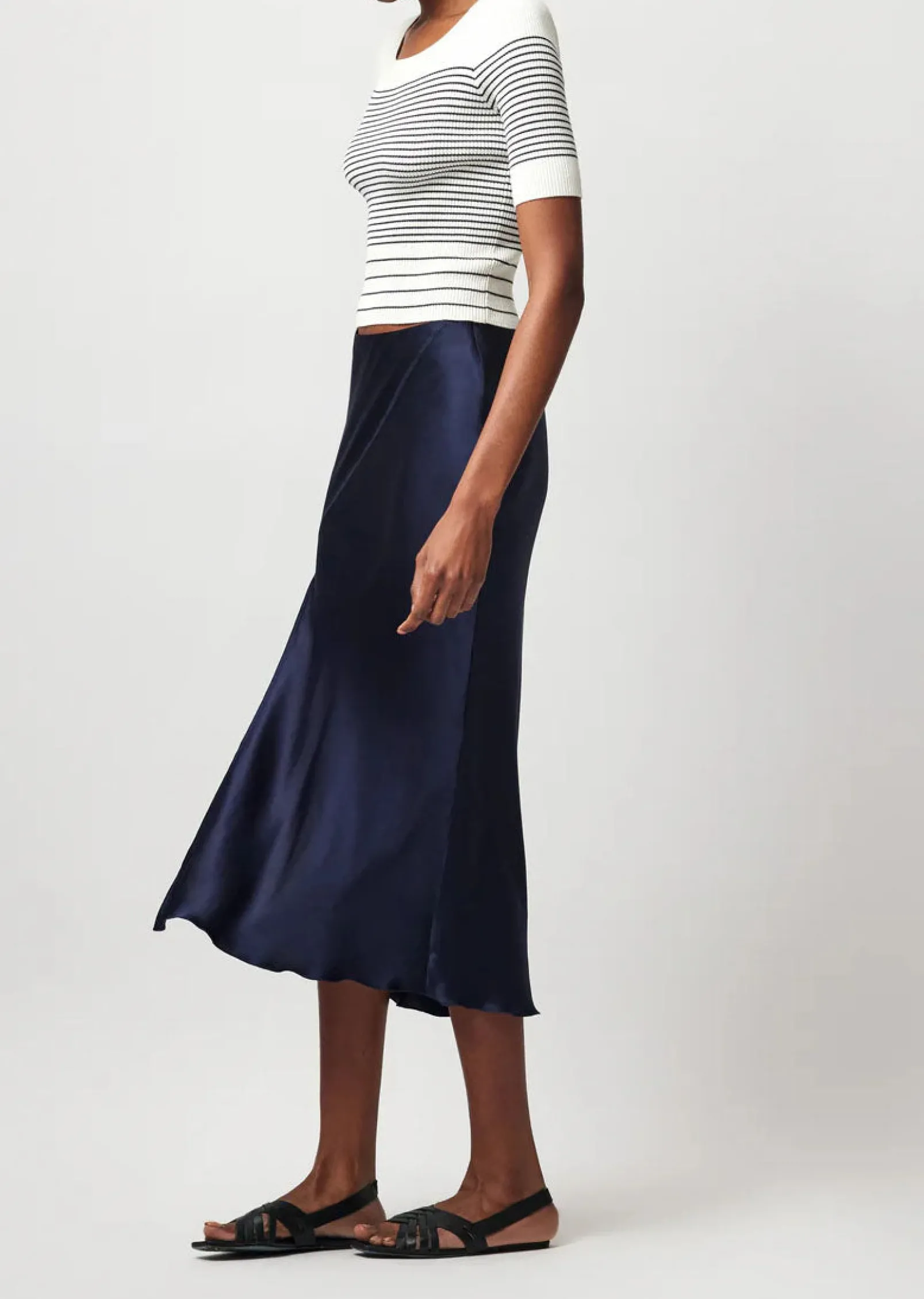 Be the first to review “Silk Charmeuse Slit Detail Midi Skirt – Ink” Cancel reply
