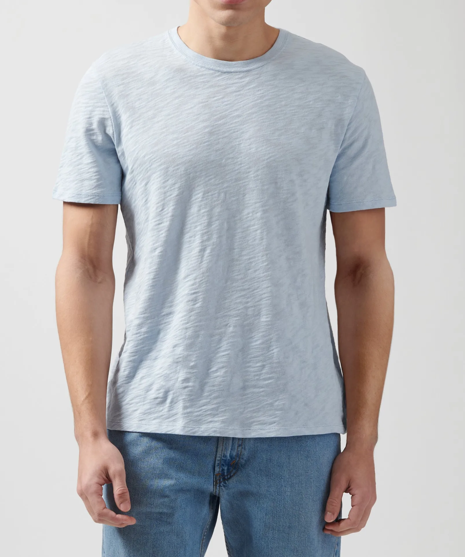 The Slub Jersey Crew Neck Tee gets its texture from the uneven yarns of our unique Peruvian Cotton. It features a relaxed crew neck silhouette, short sleeves, and just the right amount of sheer. The loose weave of this heavier Cotton molds modestly to the body offering the perfect drape.