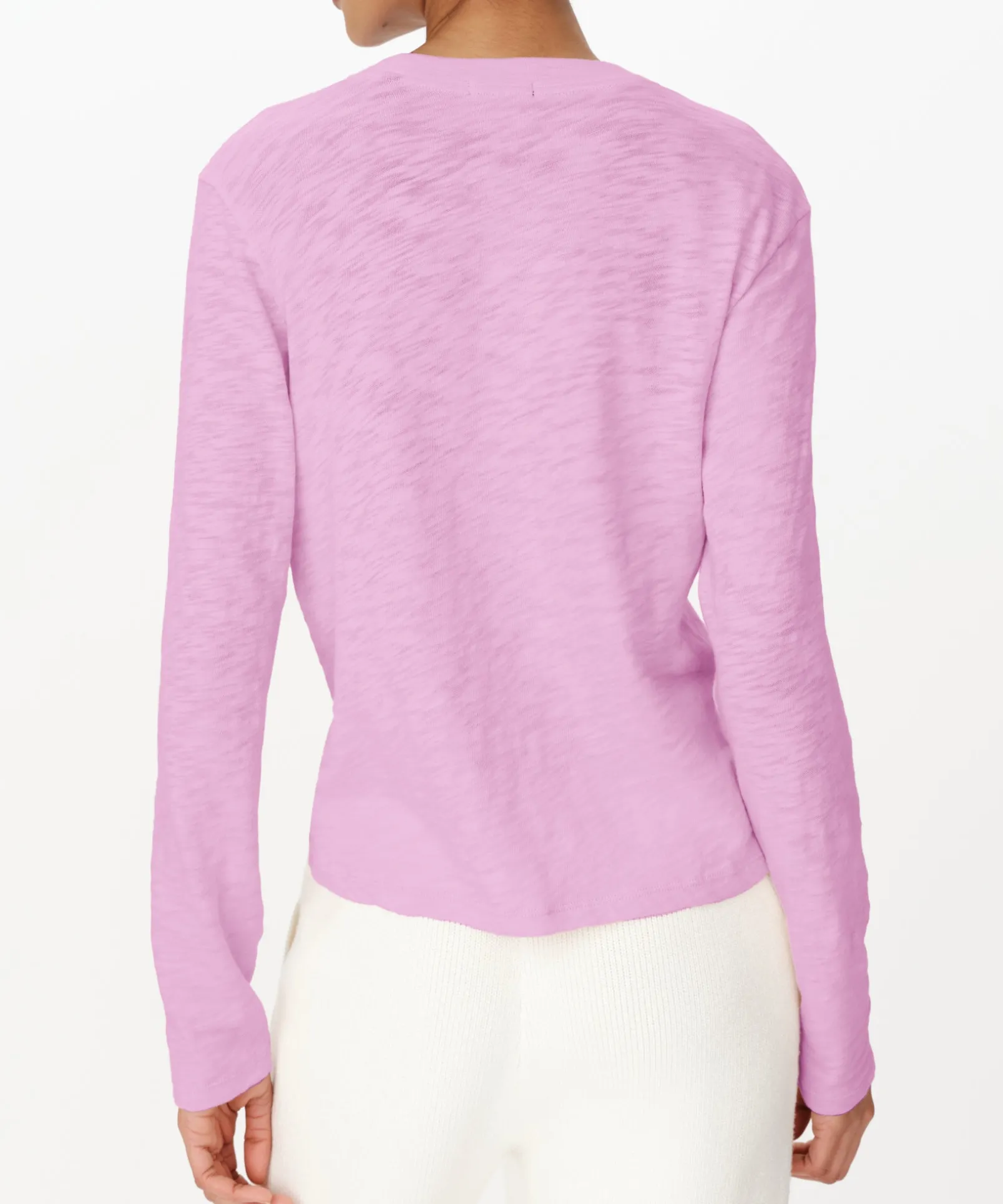 The Slub Jersey Long Sleeve Crop Tee gets its texture from the uneven yarns of our unique Peruvian Cotton. It features a subtle scoop neck, imperfectly distressed hem and sleeve cuffs, and just the right amount of sheer. The loose weave of this heavier cotton molds modestly to the body offering the perfect drape.