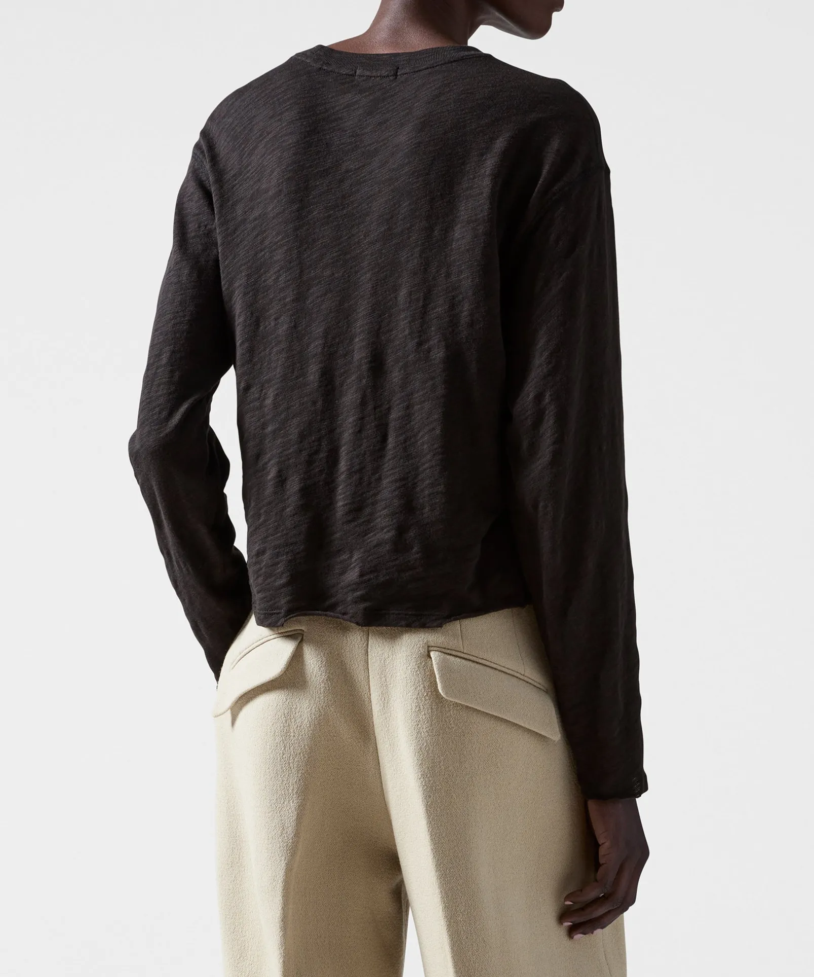 Slub Jersey Long Sleeve Destroyed Wash Crop Tee – Black