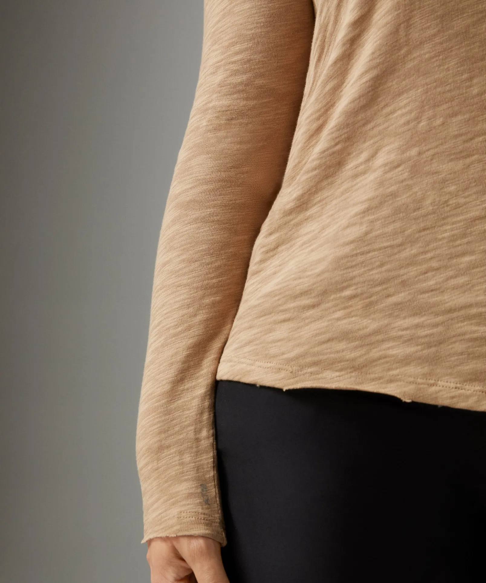Slub Jersey Long Sleeve Destroyed Wash Tee – Camel