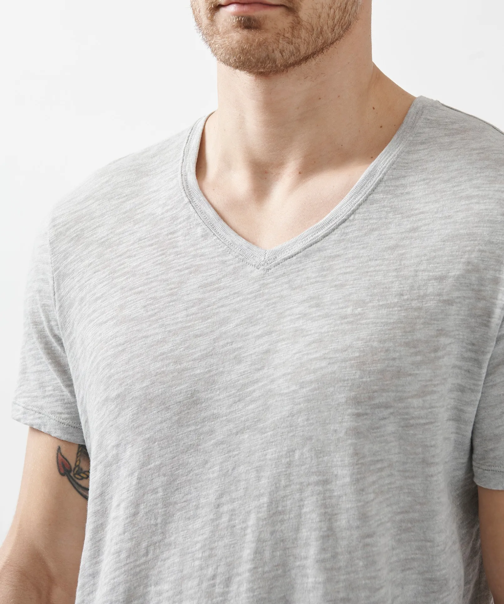 Slub Jersey V-Neck Tee – Heather Grey