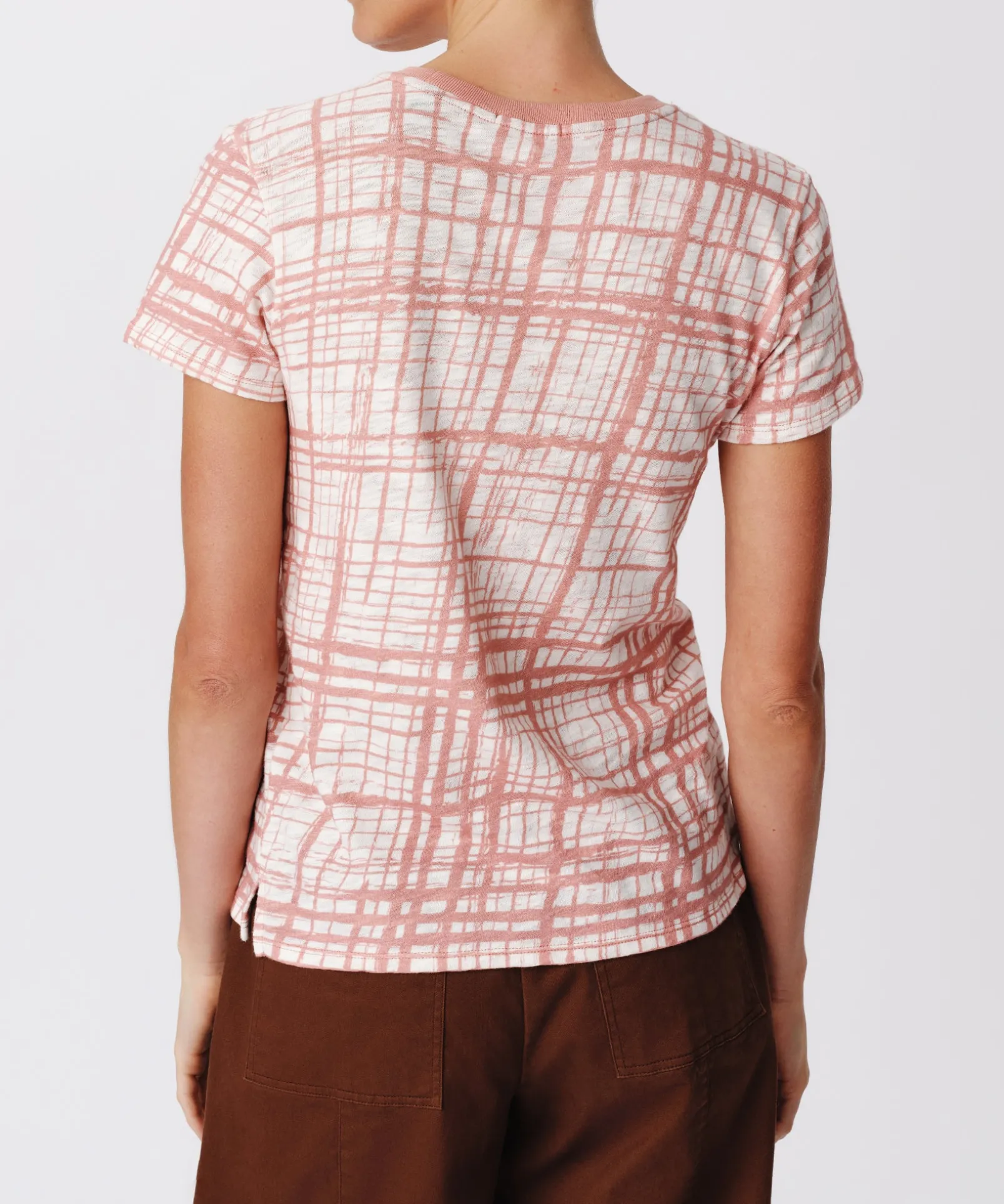 Slub Jersey With Crosshatch Schoolboy Short Sleeve Crew Neck Tee – Faded Rosewood-Chalk