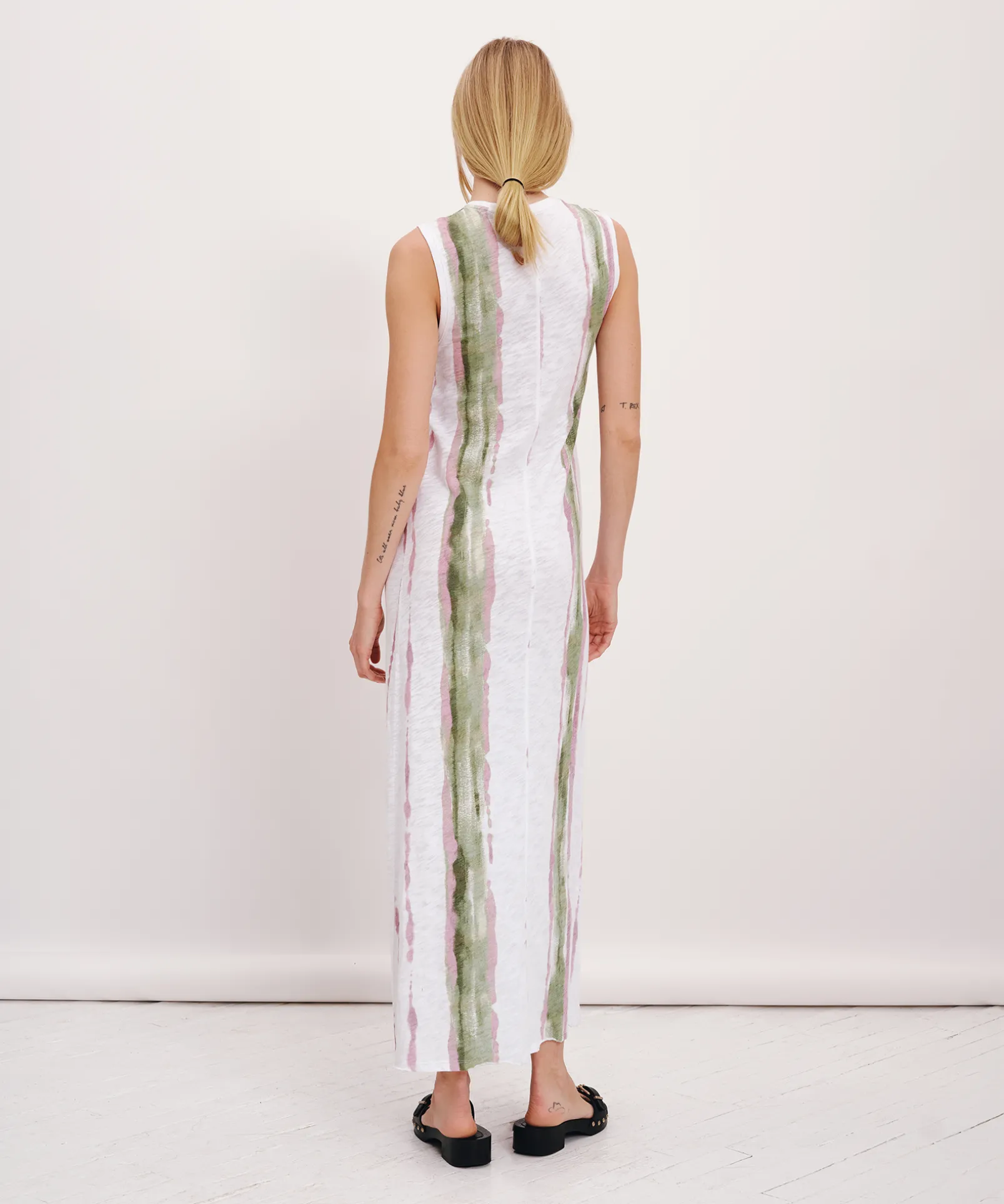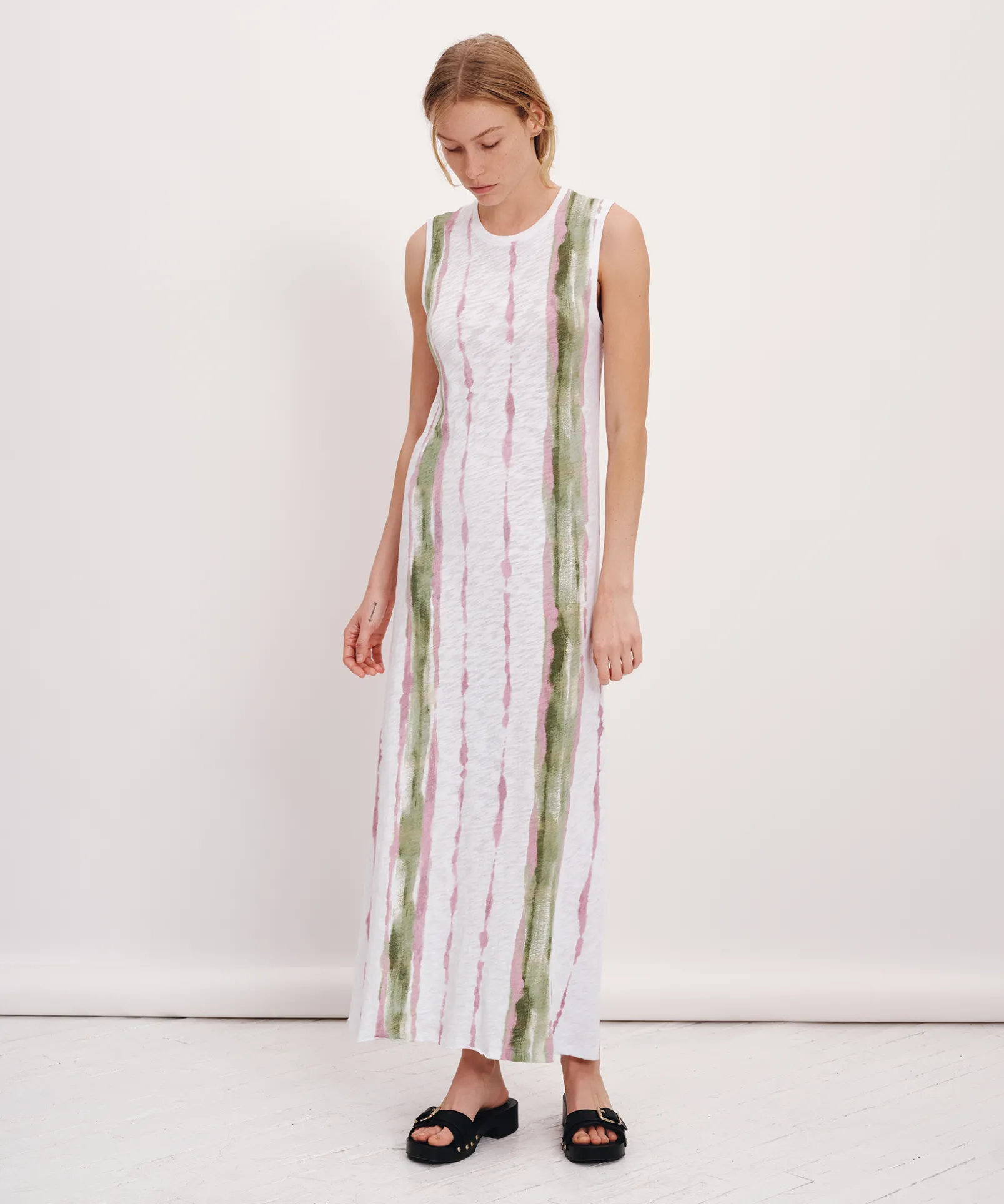 Slub Jersey With Paintstroke Sleeveless Maxi Dress – White-Multi