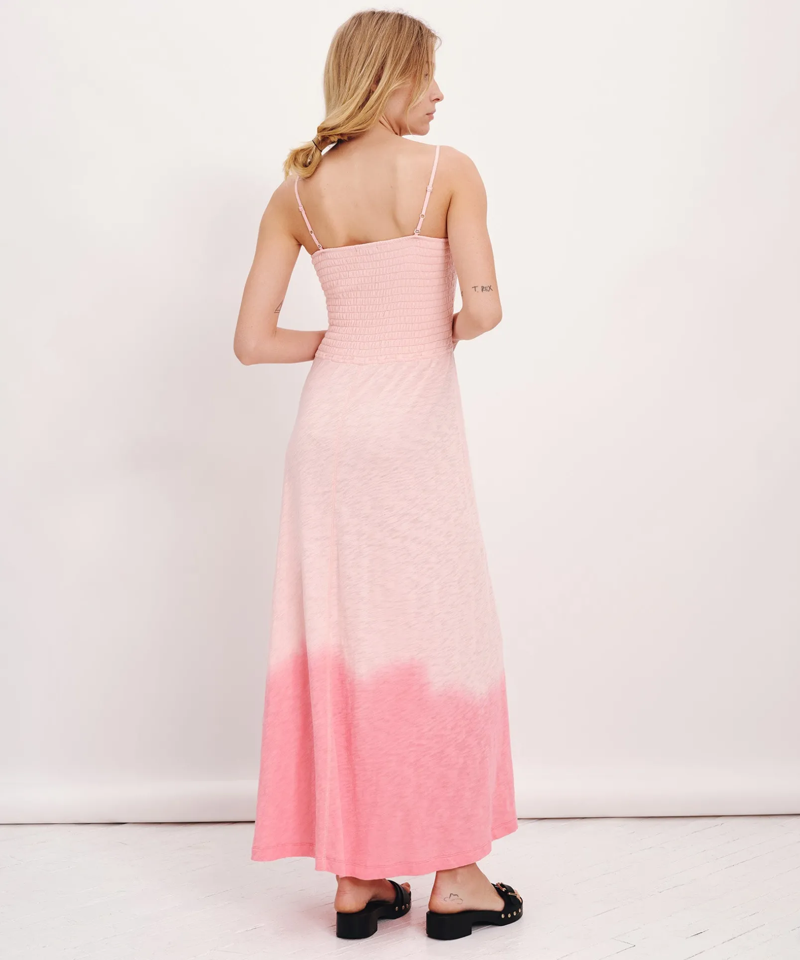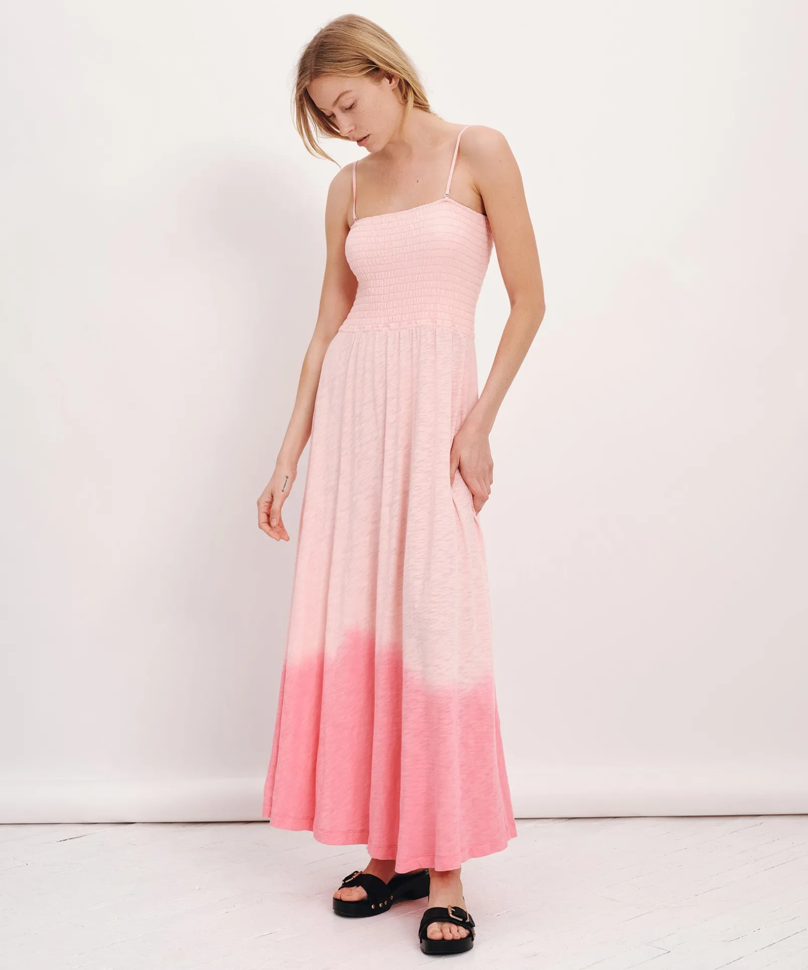The Slub Jersey Tonal Dip Smocked Dress gets its texture from the uneven yarns of our unique Peruvian Cotton. It features an organic tonal print that is dip dyed for a unique effect and removable grosgrain straps.The loose weave of this heavier cotton molds modestly to the body with a subtly sheer look and the perfect drape.