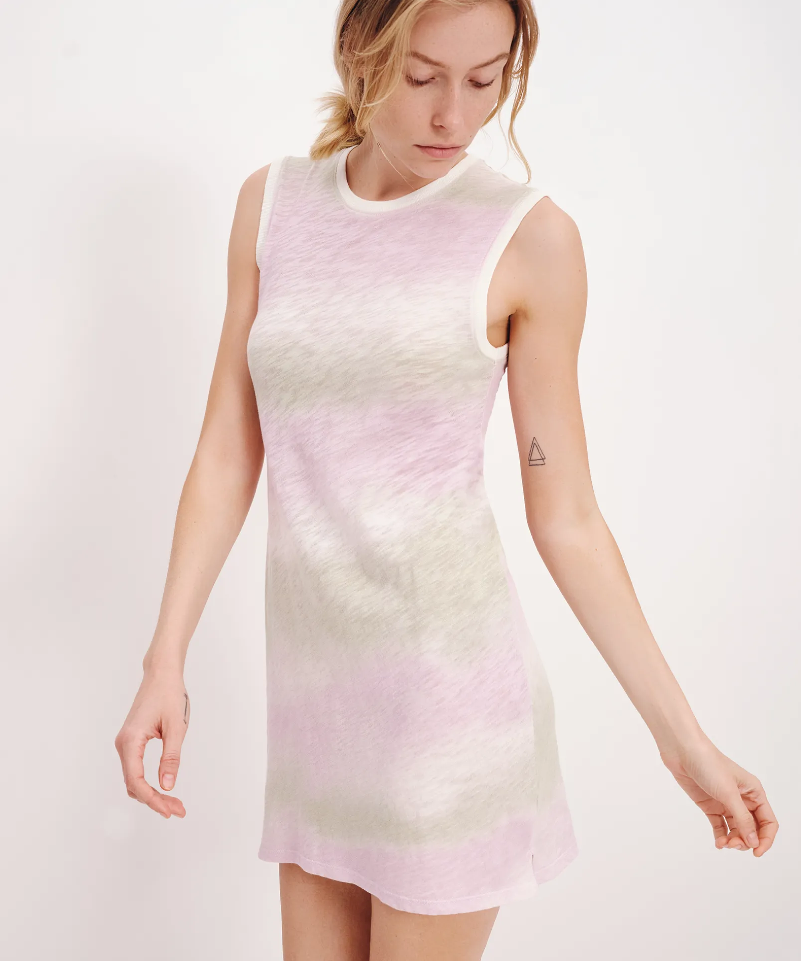 Slub Jersey With Watercolor Stripe Sleeveless Muscle Dress – Watercolor Stripe